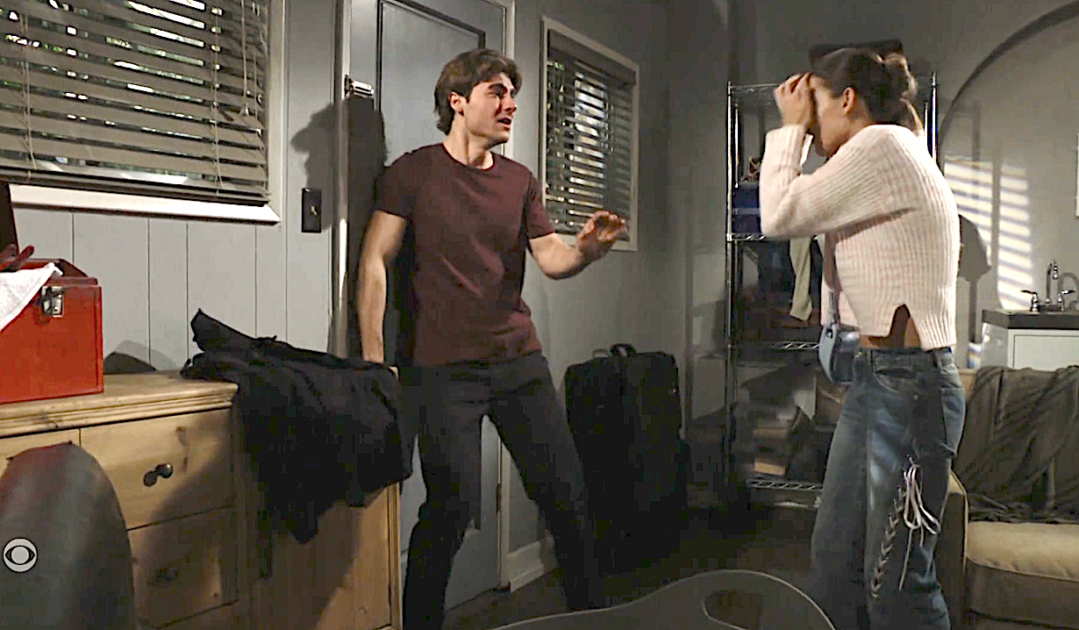 Picking up where Friday’s episode left off, Remy tries explaining his actions to a shocked and scared Electra. He kinda apologizes, saying that sometimes he goes too far. But she left him in Dallas and then hooked up with Will Spencer and, dang it, Remy loves her! He stops just short of spouting “If I can’t have you, nobody will!” But when she tries to leave, he blocks her path, locks the door and says he can’t ever be without her.
