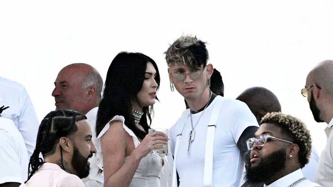 In a crowd of celebs adorned in immaculate white, Megan Fox was also spotted, seen speaking with her former fiancée Kelly, after calling off their engagement back in March. The pair are rumored to still be dating.