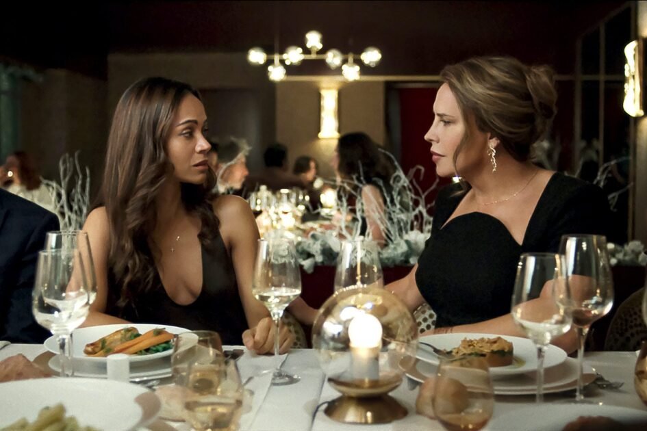 The entire first act of Emilia Pérez centers not on the title character but on Rita Moro Castro (Saldaña), a criminal defense attorney at a high-profile firm in Mexico City. When her sexist boss, who relies heavily on her preparation to win his cases, succeeds in keeping a wealthy wife-murderer out of prison, Rita sings out her rage about working for the bad guys in a savage diss track over a chorus of cleaning ladies. But someone even worse is about to call her up with a proposition. The notorious cartel leader known as Manitas Del Monte (Gascón) wants to hire