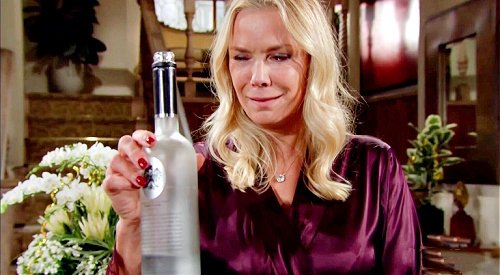 At some point, Brooke could start hitting the bottle again. Brooke could have a booze relapse coming up if she falls off the wagon over Ridge and Taylor’s reunion.