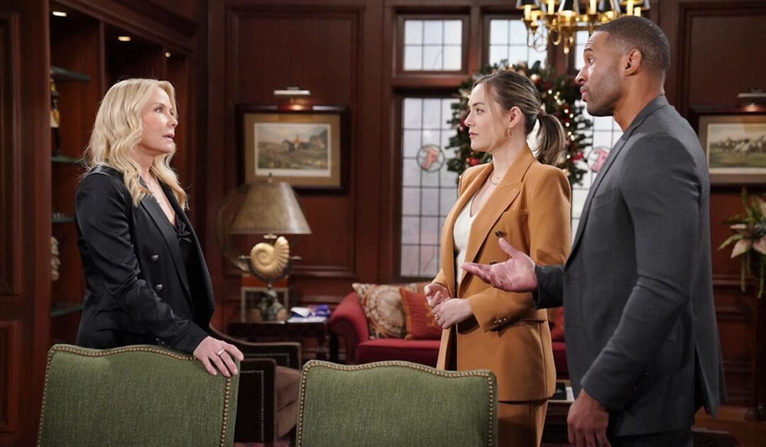 At the cliff house, Steffy, Ridge, and Eric continue discussing the situation with Carter and Hope. They agree not to step foot in the place until they get it back. Eric wonders how he hopes to run a fashion house. Ridge snarks that it’s not a fashion house, it’s a global luxury brand, “Is that what he called it?” Eric says it’s a travesty. Steffy says Hope’s influence destroyed Carter and now it could ruin the business. They rehash Carter and Hope pulling coup. Ridge says it won’t last. He can’t run the company without them. They go over Carter and Hope being on their own. Ridge says Carter sees it as a business, but it’s actually a community of artists. If you want to run a fashion house, you need inspiration and a leader with a vision and passion. Carter can’t run the company on his own.